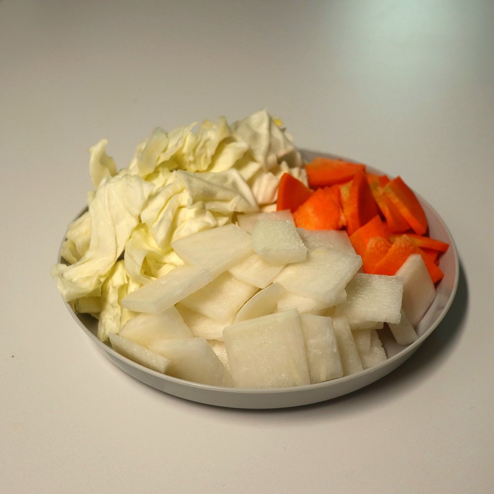 돼지고기는 오랫동안 냉동보관이 가능하고 다양한 요리에 사용할 수 있는 ‘돌돌말이 대패 목심’을 사용했어요. 야채의 경우, 소량으로 구매할 수 있는 ‘조각 양배추’와 여러 야채가 섞여 있는 ‘냉동 브로콜리믹스’를 사용했어요. 돈지루의 양념 역할을 하는 된장은 ‘마루코메 시로미소’를 사용했는데요. ‘시로미소’는 백된장으로 흰색 된장을 뜻해요.