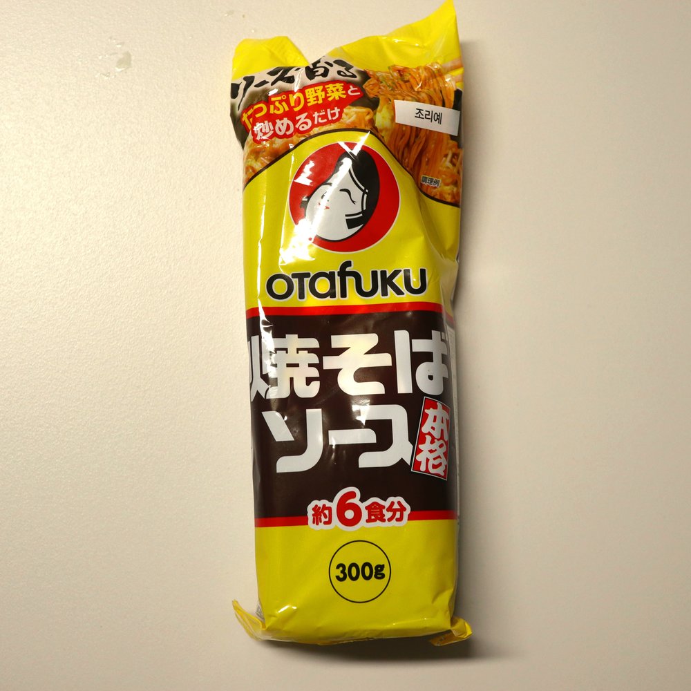 야키소바는 사실 면과 소스만 있어도 만들 수 있는 요리에요. 맛을 위해 다양한 재료를 첨가하는데요. 야키소바의 맛을 좌우하는 데에는 소스가 가장 중요하다고 생각해요. 소스는 ‘오타후쿠 야키소바 소스’를 사용했는데요. 오타후쿠는 오코노미야키 소스로도 많이 알려진 회사예요. 일본 시장에서 80%의 점유율을 차지할 만큼, 대표적인 ‘일본 맛’을 보여주는데요. 야키소바 소스 역시 가격이 저렴하고 쉽게 일본 본토의 맛을 낼 수 있어 추천하는 컬리템이에요.