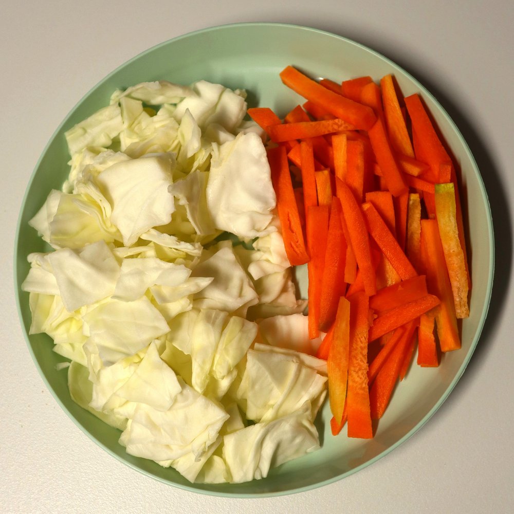 오코노미야키는 이름에서 알 수 있다시피 정해져 있는 재료는 없어요. 다만, 기본적으로 밀가루(혹은 오코노미야키 반죽 가루), 양배추, 소스, 가쓰오부시, 계란 정도가 기본 재료로 사용되고 있어요. 저는 이미 이전 요리에서 사용한 ‘돌돌말이 대패목심’, ‘조각 양배추’, ‘계란’이 있어, ‘가쓰오부시’와 ‘밀가루’, ‘마요네즈’를 사용해서 오코노미야키를 만들어 보았어요.
