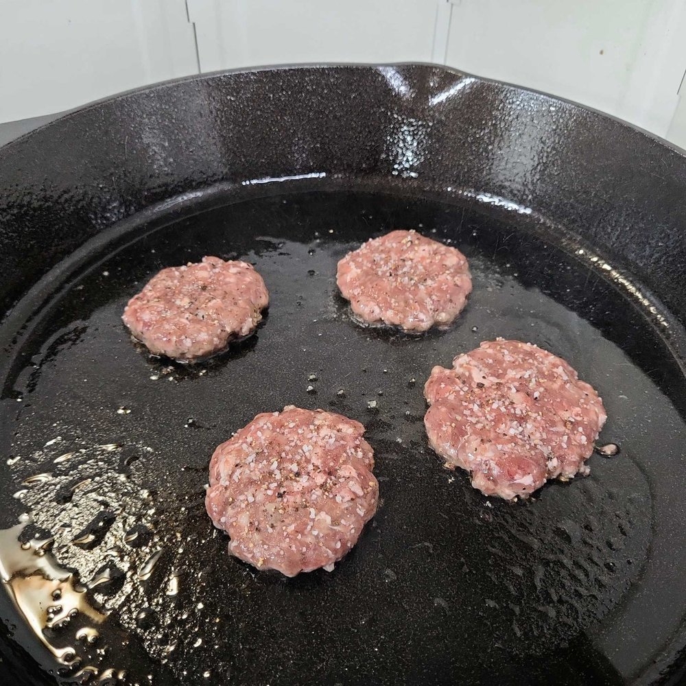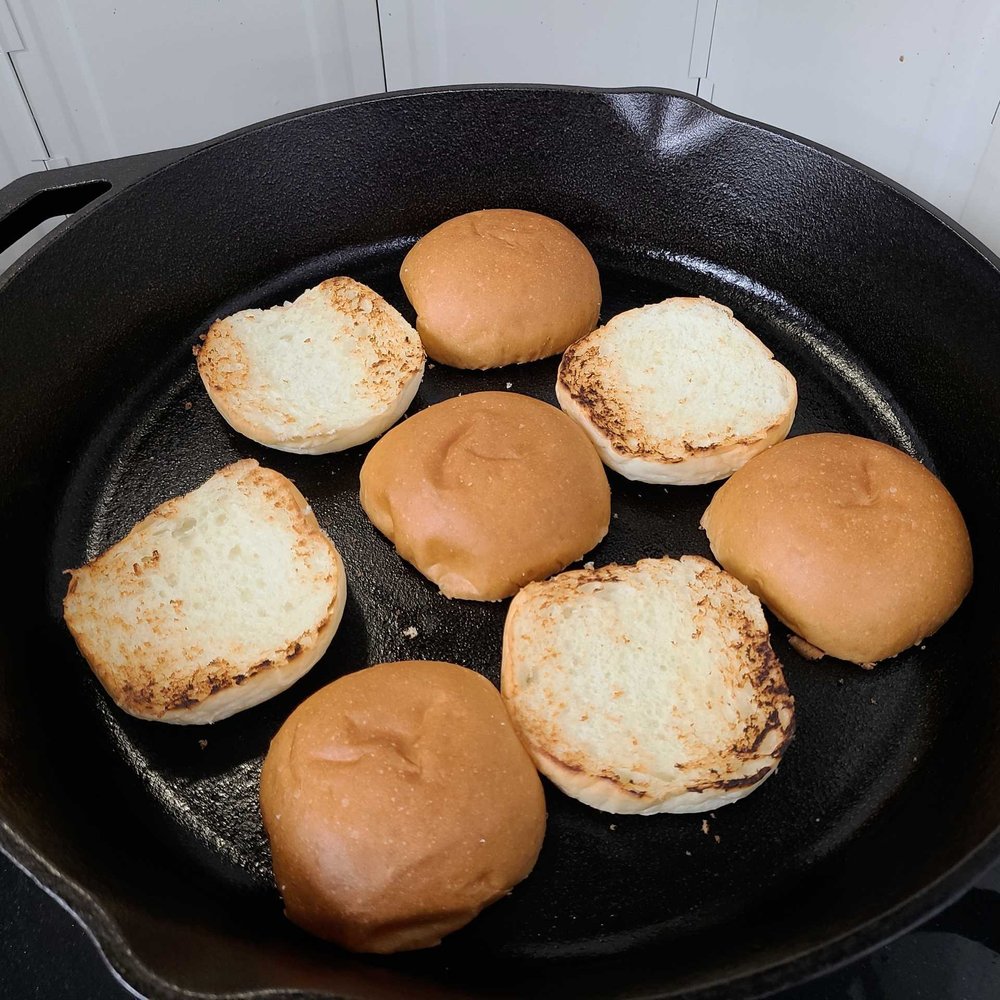 다진 고기는 소고기라도 충분히 익혀주세요. 속이 아직 빨갛다면 조금 더 구워주세요.