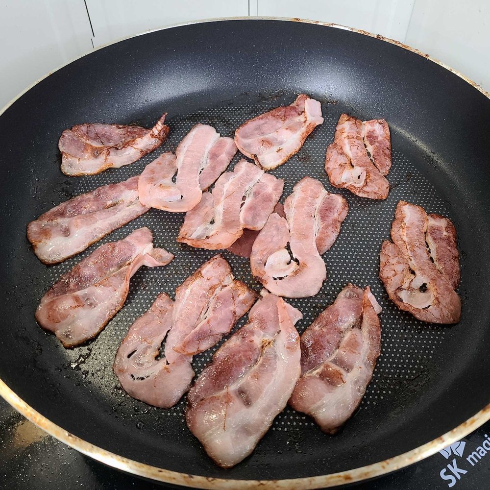 먼저 베이컨을 바삭하게 구워주세요.