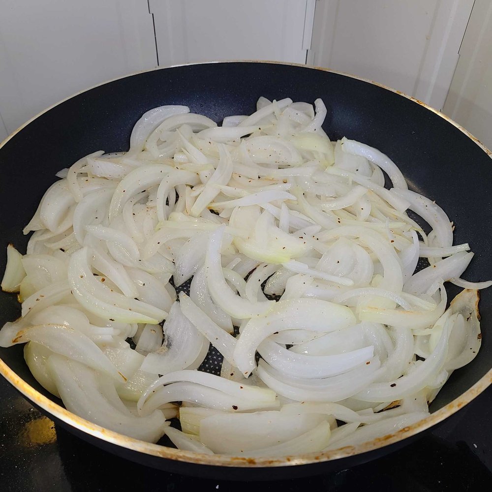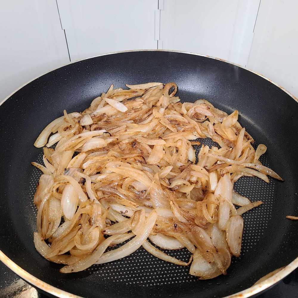 약불에 양파를 오랜 시간 익히면 갈색으로 변하면서 부드럽게 카라멜화가 된답니다. 너무 오래 걸리는 게 싫다면 설탕을 조금 뿌려도 좋아요.