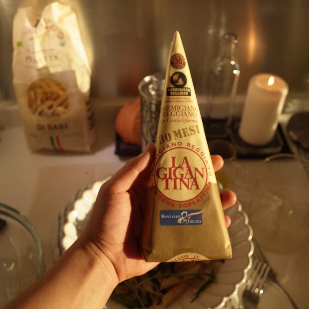 제가 사용한 치즈는 [몬타나리 파르미지아노 레지아노 기간티나 30개월]이에요. 파스타 위에 솔솔 뿌려 먹으면 풍미가 폭발할 거예요.