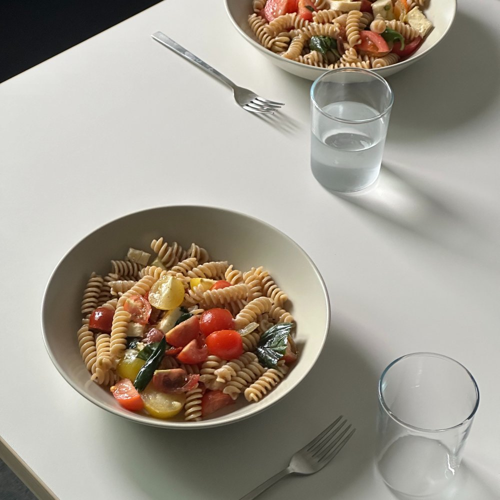 면 삶는 시간이면 재료 준비가 끝나는 아주 간단한 파스타에요. 뜨거운 파스타 면의 열기를 이용해 브리치즈가 사르르 녹으면 다른 양념 없이 깊은 치즈의 향과 맛이 파스타 면에 배어들어 더할 나위 없습니다. 거기에 토마토와 바질의 궁합은 굳이 말하지 않아도 잘 아시죠? 그야말로 맛이 없을 수 없는 조합이에요 😇