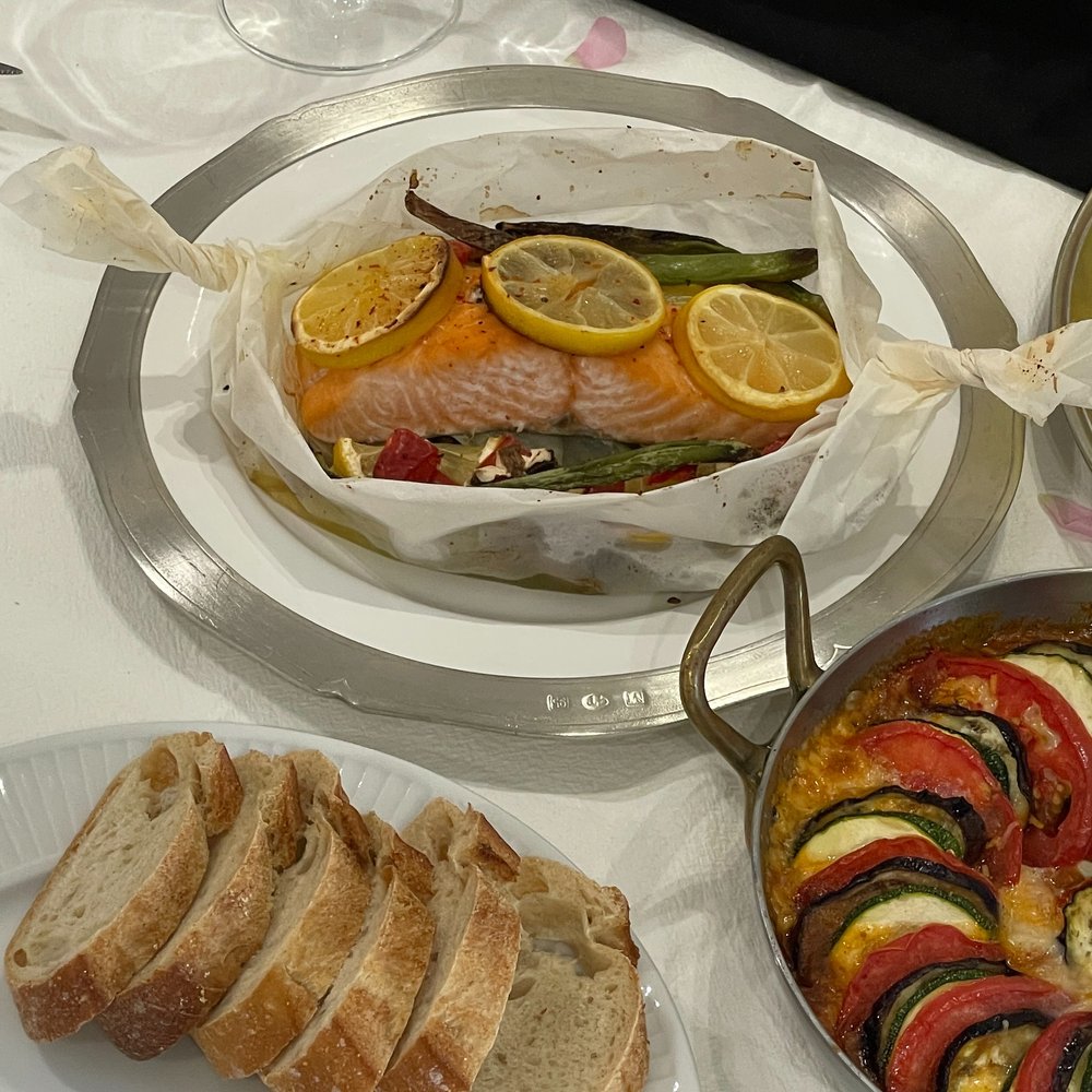 파피요트는 본래 프랑스어로 기름종이라는 뜻이에요. 생선, 해산물, 야채를 기름종이로 싼 다음 채소와 함께 구워낸 프랑스 요리랍니다. 종이 호일을 이용해 제가 좋아하는 연어와 각종 야채를 넣어 손님 초대 테이블에 연어 파피요트를 내놓으면 근사한 비주얼에 친구들의 감탄사가 절로 나와요. 연어를 좋아하신다면 꼭 한 번 만들어 드셔보세요.