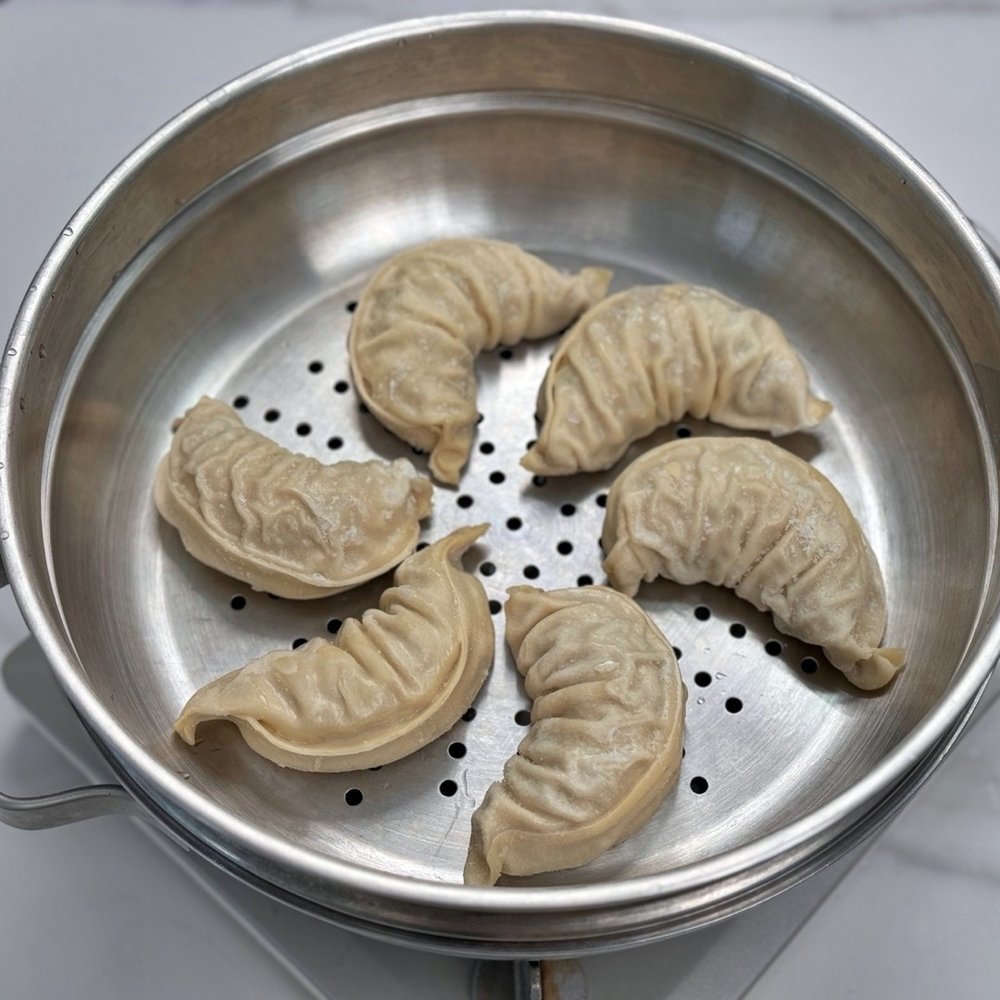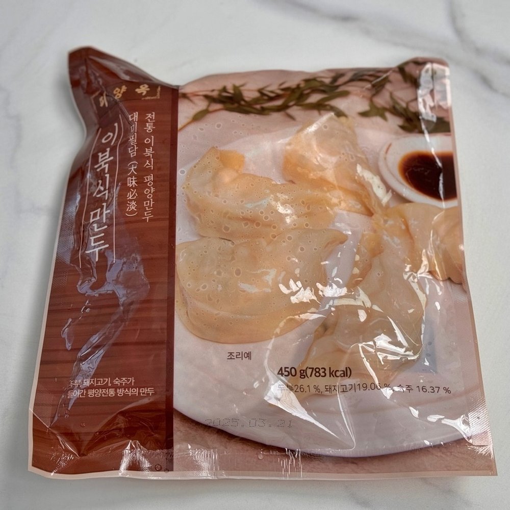 손바닥 크기처럼 큼지막한 이북식 만두라 두 알만 먹어도 든든할 정도예요. 명절 때는 사골국에 넣어 떡만둣국 만들기도 좋고, 냉면이나 칼국수 등에 곁들여 먹기에도 좋은 굿 아이템이랍니다!