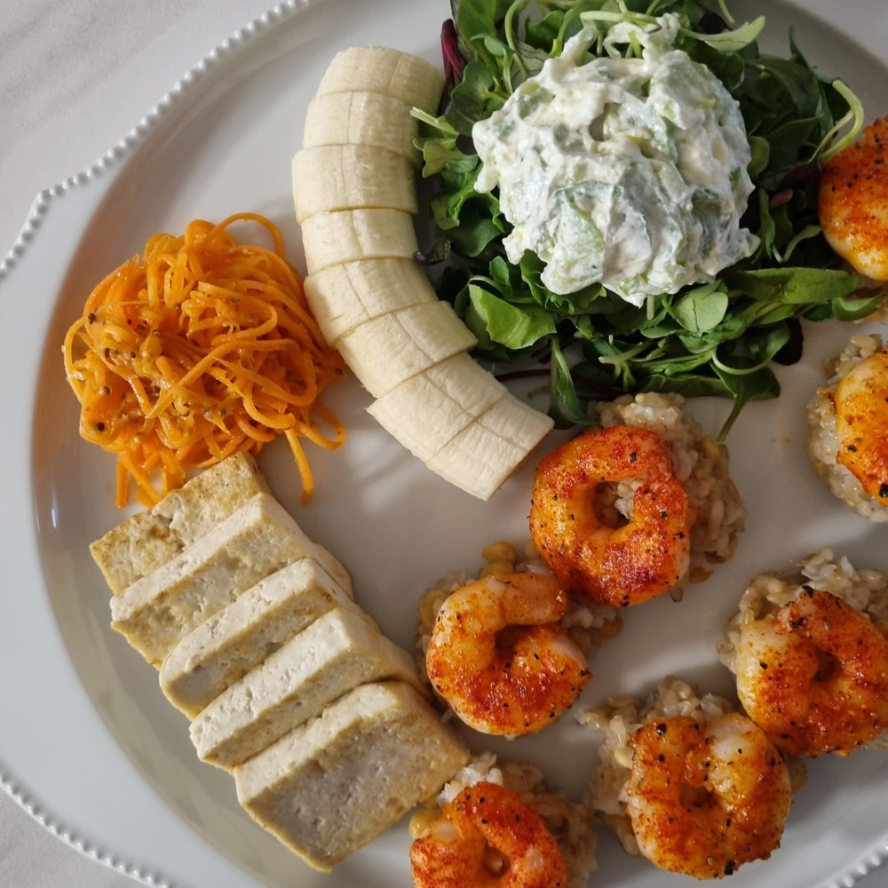 당근 라페와 바나나, 두부로 조금 더 포만감 있는 샐러드로 만들어 봤어요.