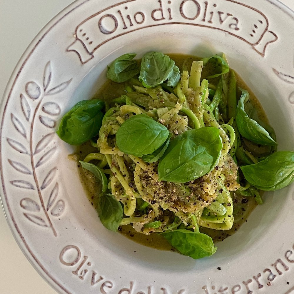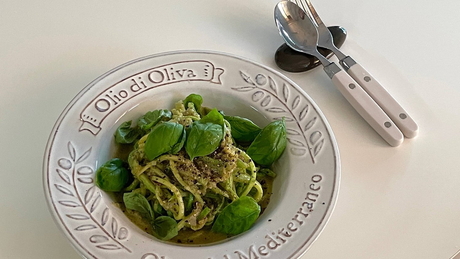 애호박 1개, 올리브유 1T, 마늘 3개, 페페론치노 3개, 바질 페스토 4T, 소금, 후추, 바질