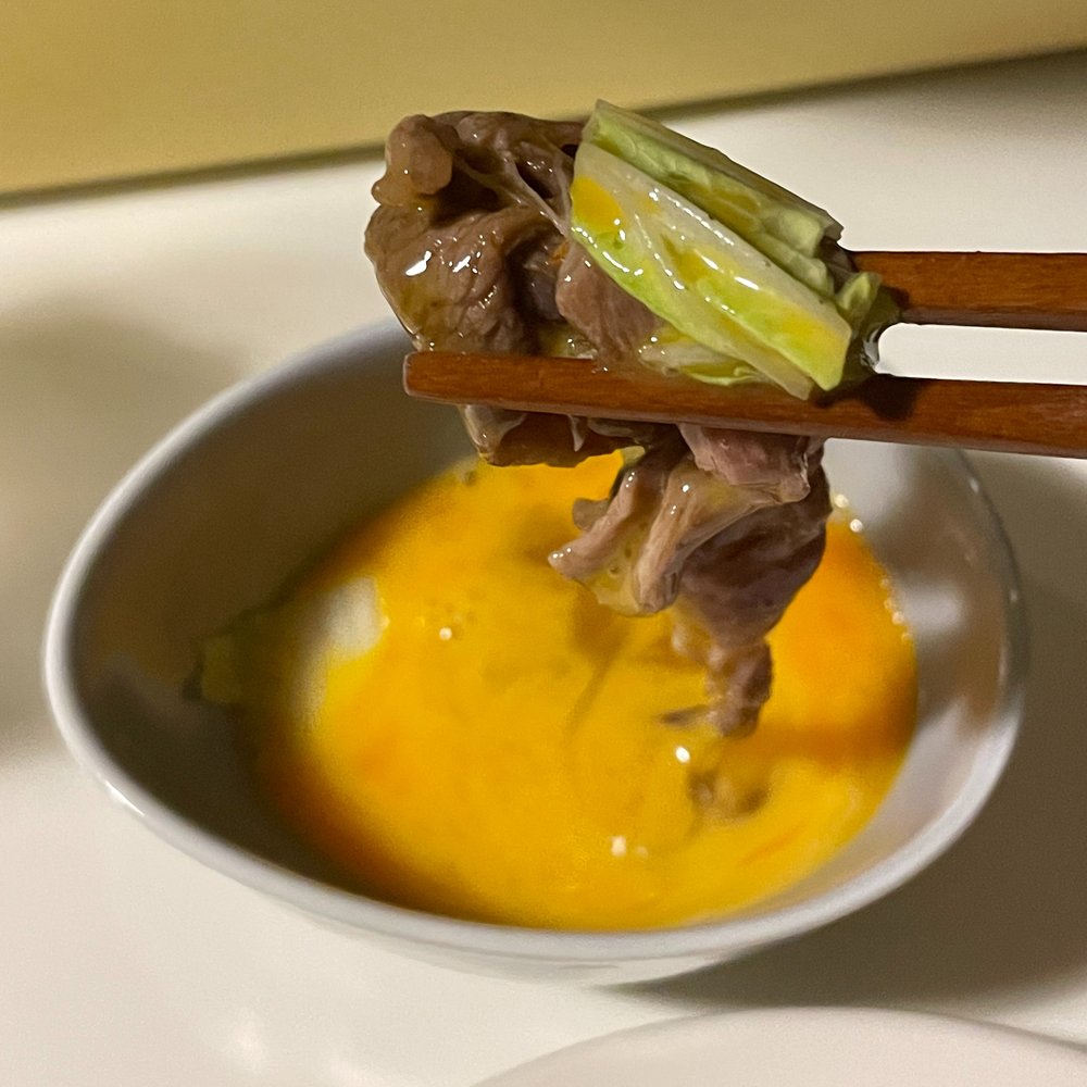 6. 그릇에 날달걀을 풀어 익은 재료를 찍어 먹어주세요.