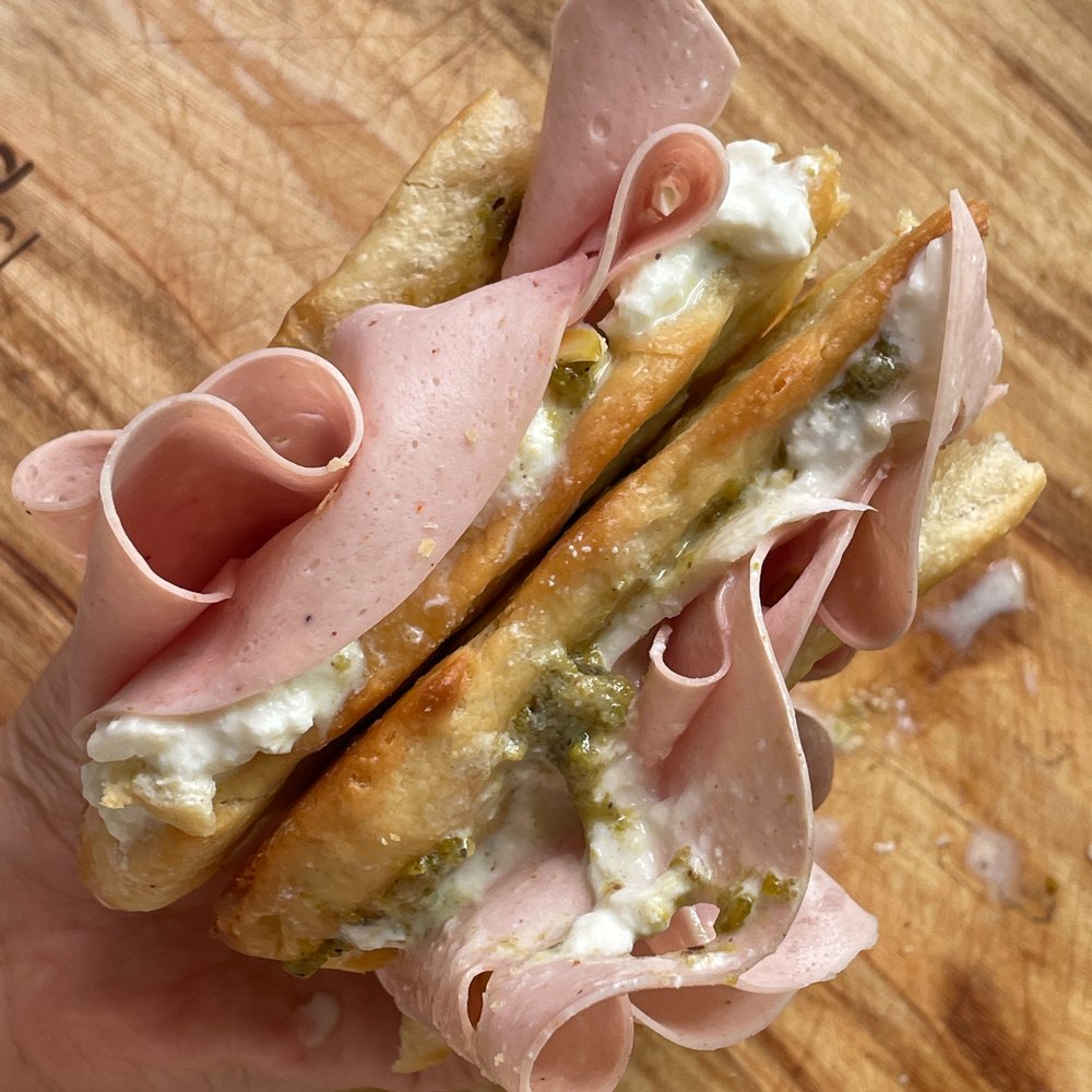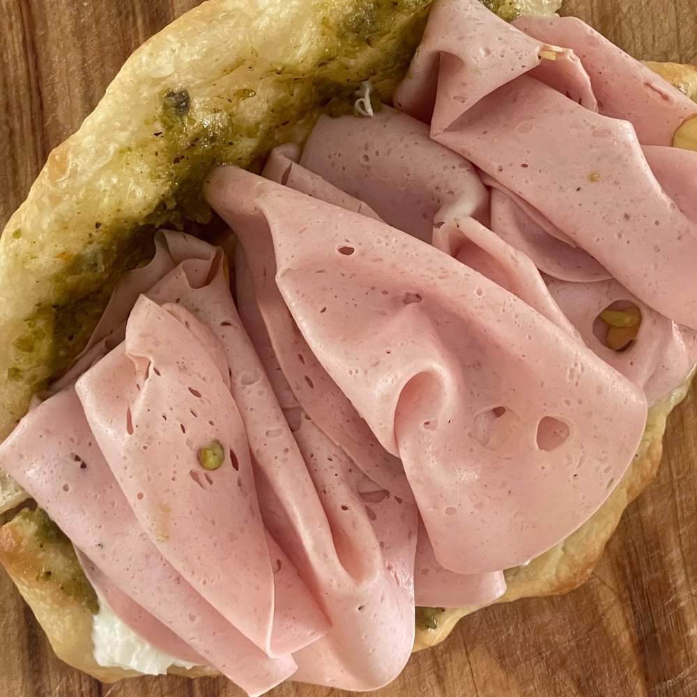 그중에서도 제일 푹 빠진 피스타치오와 모르타델라, 스트라치아텔라의 삼박자 조합을 소개해 드릴게요. 고소하고 짭짤한 맛이 계속 당기게 하는 매력이 있답니다.