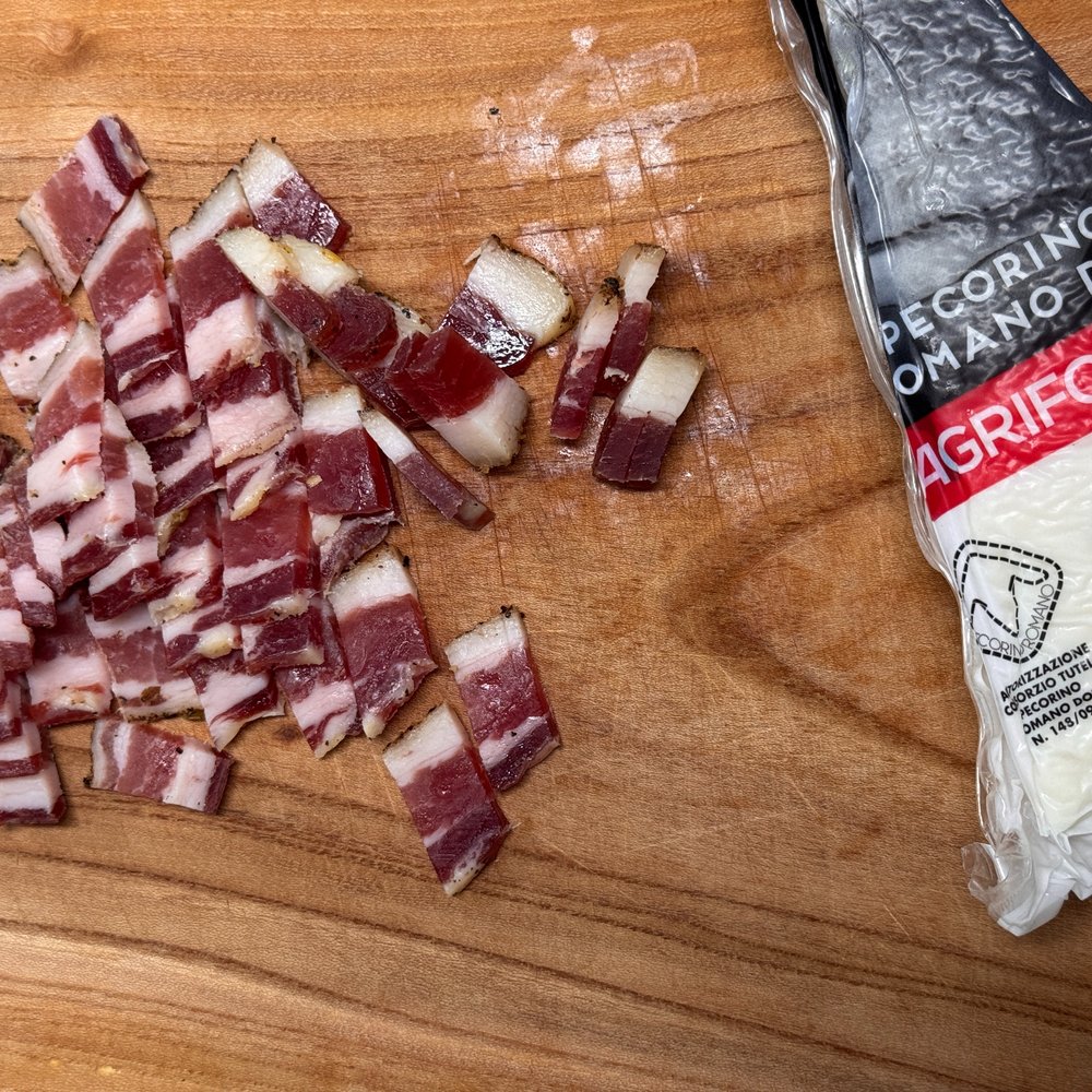 원래는 관찰레를 쓰는 게 맞지만 저는 조금 더 지방이 덜 한 판체타를 좋아해서 판체타를 사용했습니다.