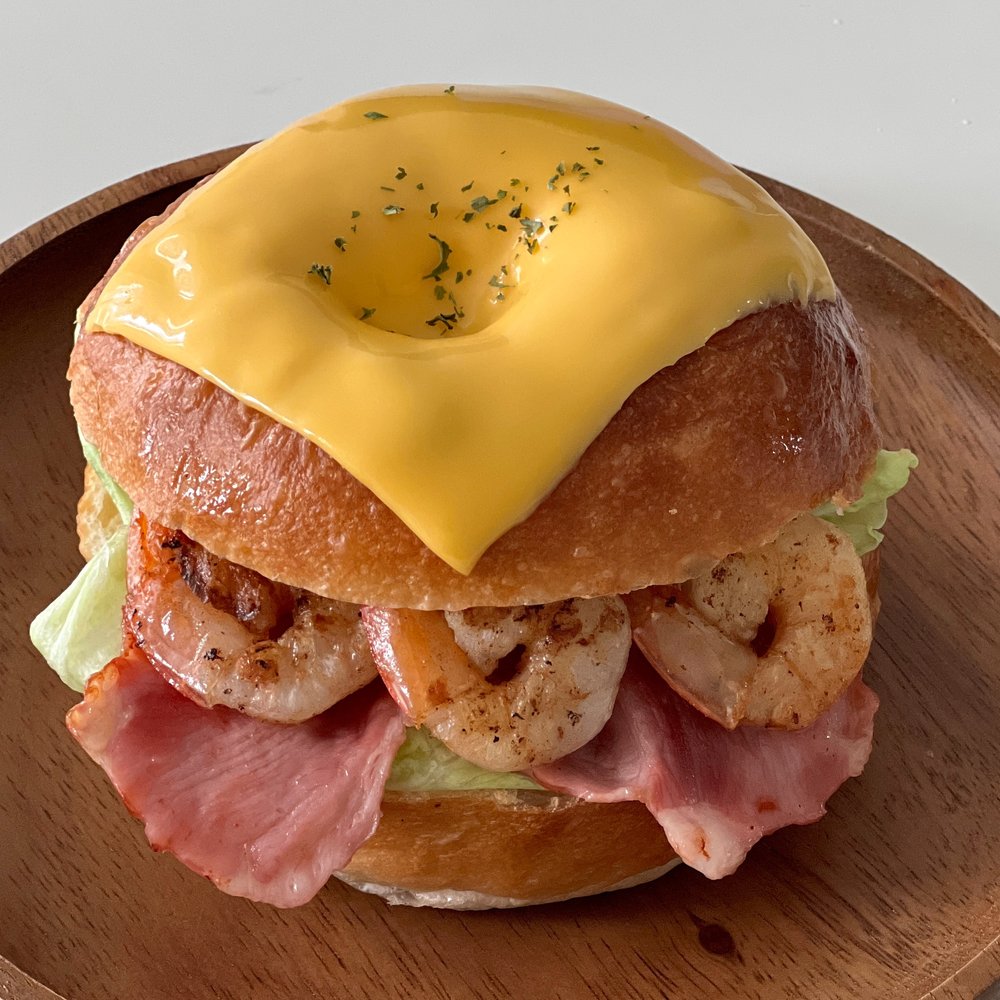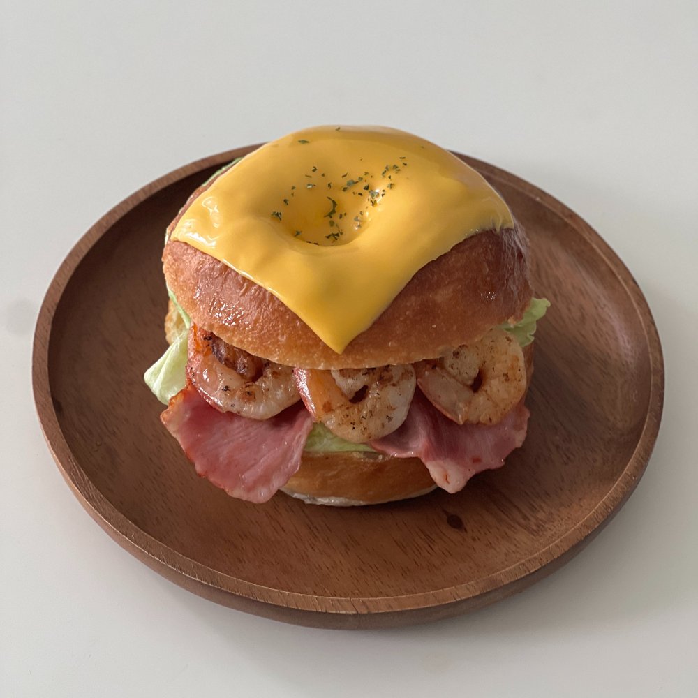 베이컨, 양상추, 새우, 치즈를 활용해서 베이글 샌드위치를 만들어 보았어요.