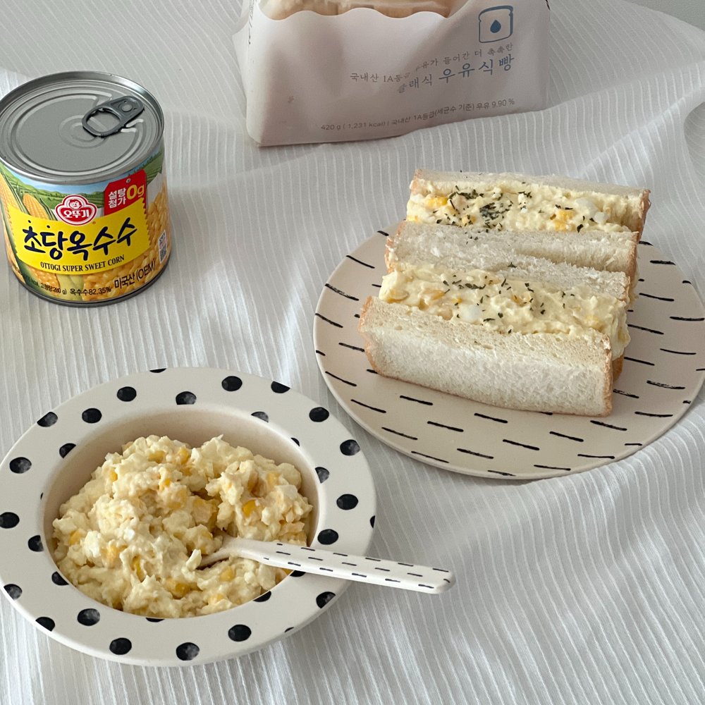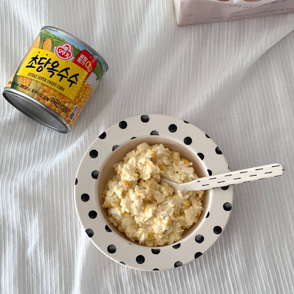 씹는 맛이 들어가면 좋을 것 같아서, 초당옥수수 캔을 넣어줬더니 씹는 맛과 단맛이 더해져 더 맛있더라고요.