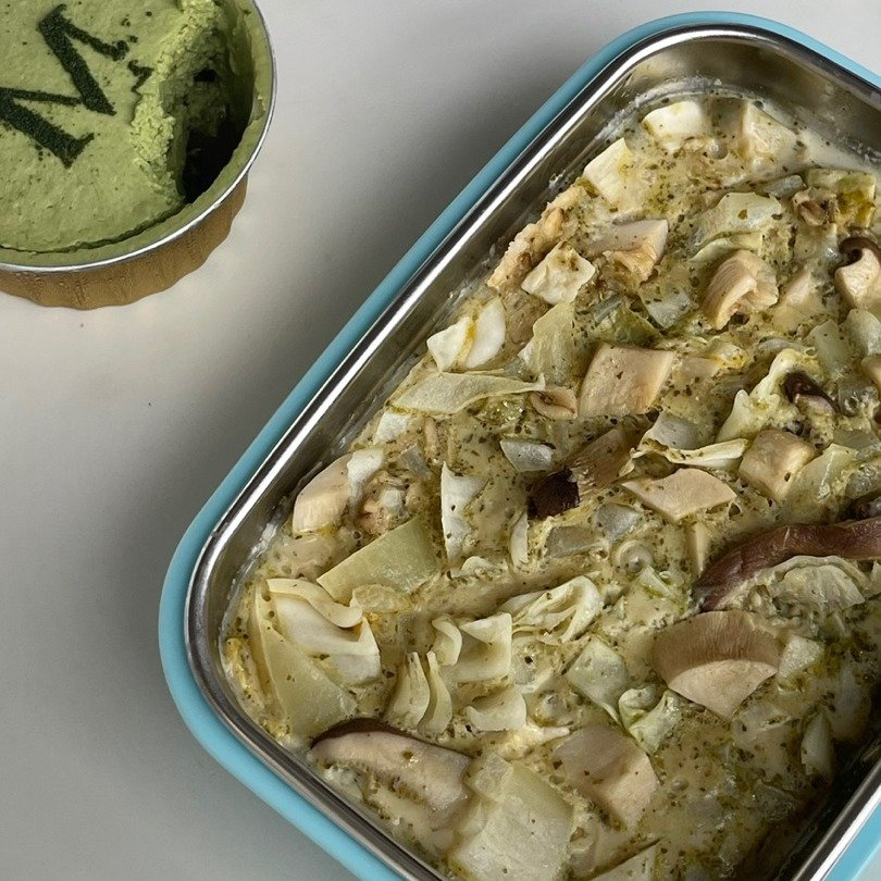 바질페스토 1큰술, 새송이버섯 1~2개, 두유 조금, 소금, 후추 약간