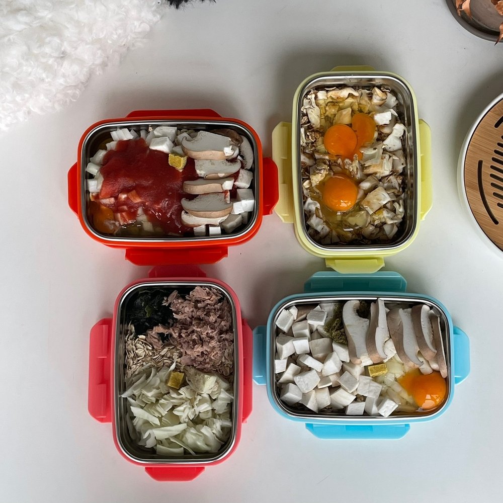 찐 야채는 한 번 먹을 분량만큼 나누어서 도시락통에 담고, 먹기 직전에 전자레인지에서 1분 30초~3분 정도 돌려주면 방금 찐 것처럼 따뜻하게 먹을 수 있어요👍