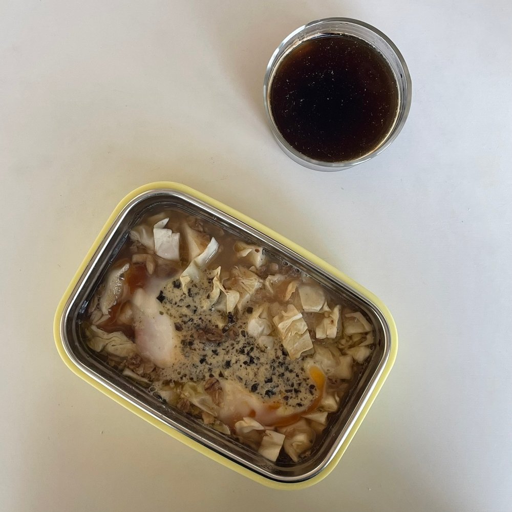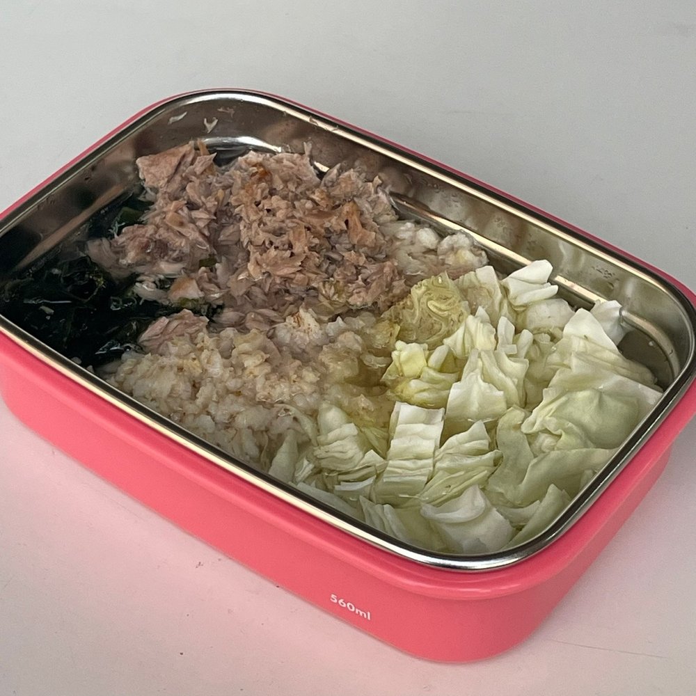현미 곤약밥 90g, 양배추 1/8통, 달걀 1~2개, 기름 뺀 참치 1/2~1캔