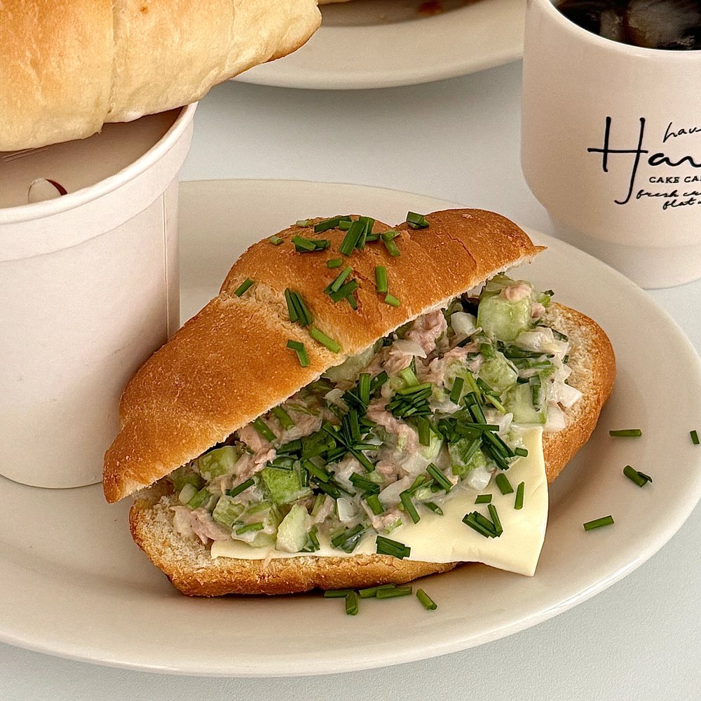 밋밋한 참치에 오이의 아삭한 식감을 더해 더욱 풍부한 맛이 느껴지는 오이 참치 소금빵!
