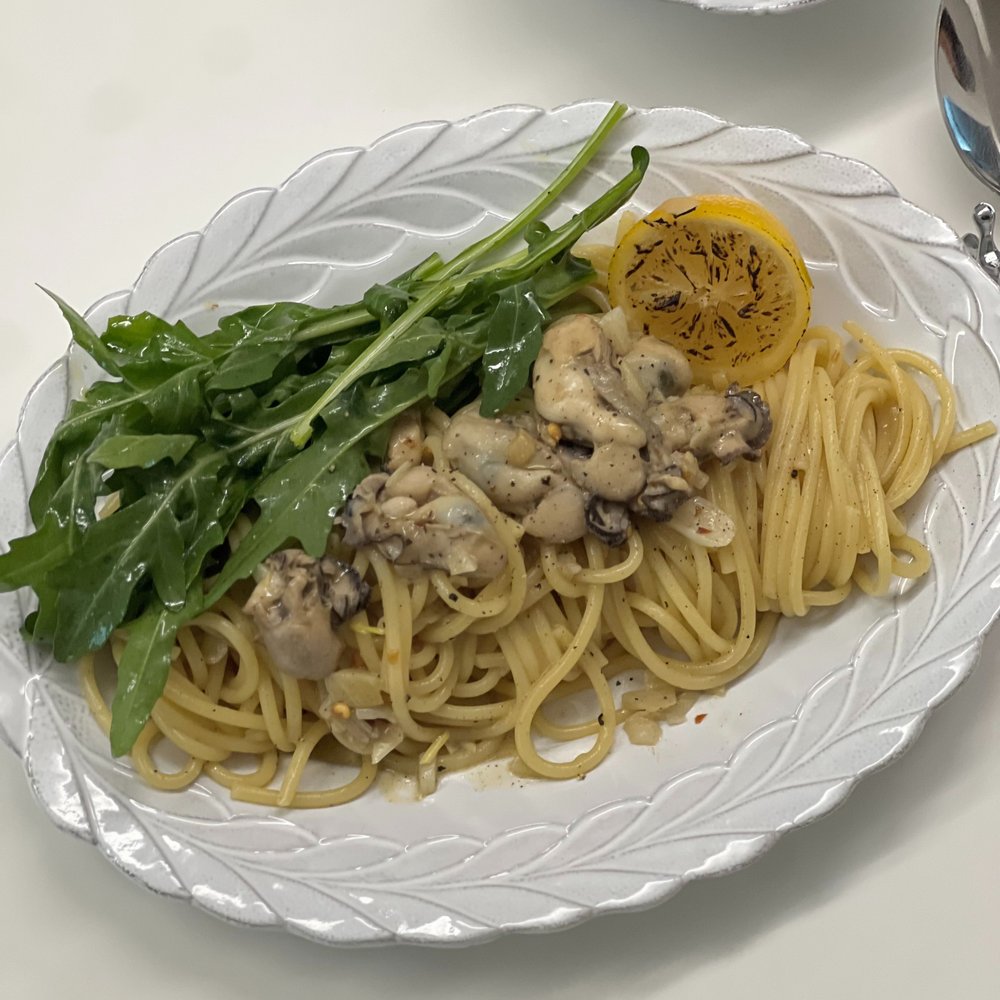 굴, 레몬, 마늘, 페페론치노, 화이트와인, 소금, 후추, 참치액, 루꼴라, 파르미지아노