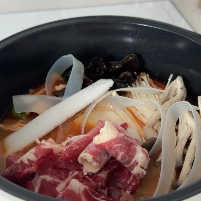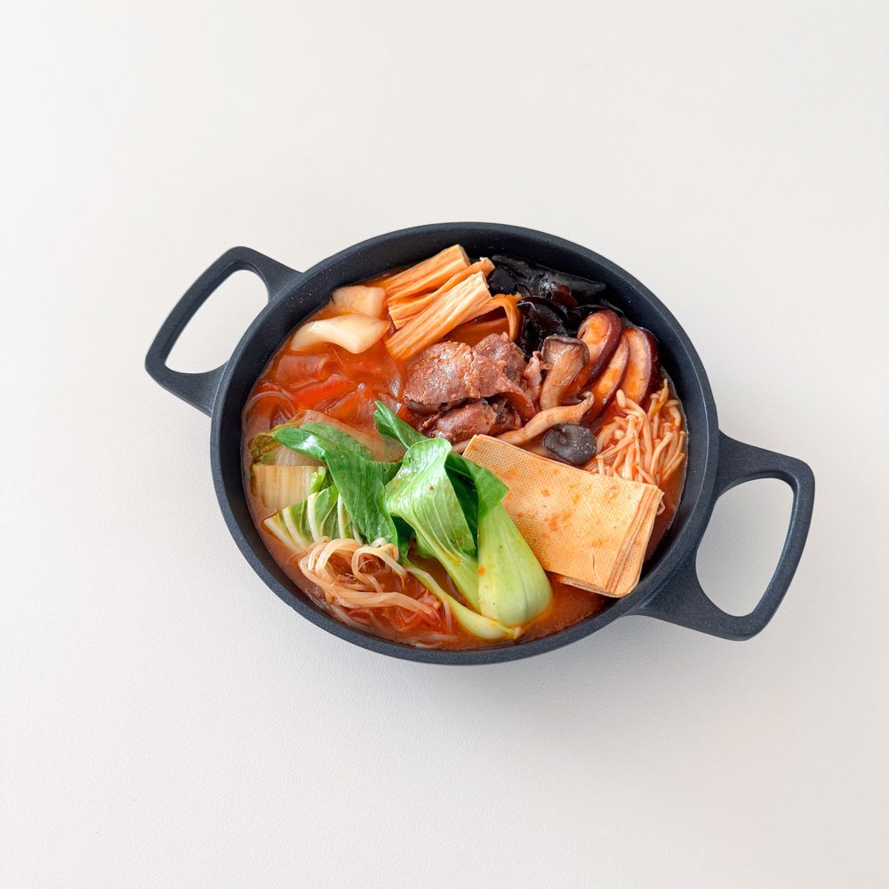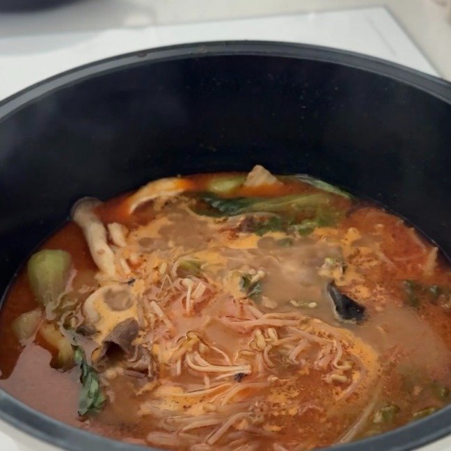 ✔️ 그리고 사골 육수를 넣으면 더 구수하고 깊은 맛이 나요! 특히 컬리에서 파는 풀무원 사골육수는 다른 제품보다 더 걸쭉하고 농축된 느낌이어서 정말 추천해요. 육수 하나만으로도 마라탕 국물이 훨씬 풍부해진답니다.