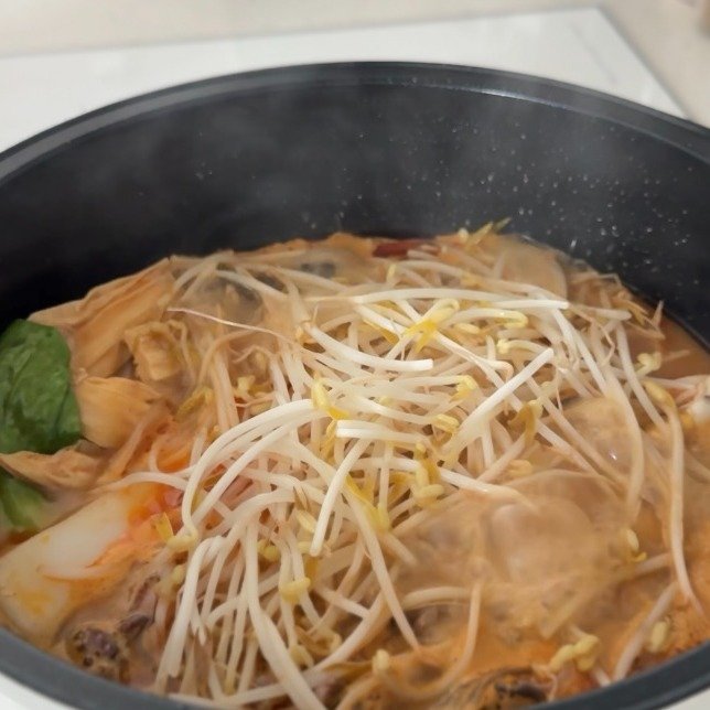 먹고 싶은 토핑들을 마음껏 넣다 보니 곰솥 크기의 냄비가 가득 차버렸어요😂 몇 끼를 먹을 양이 되어버렸는데, 아마 5인분은 될 것 같아요.