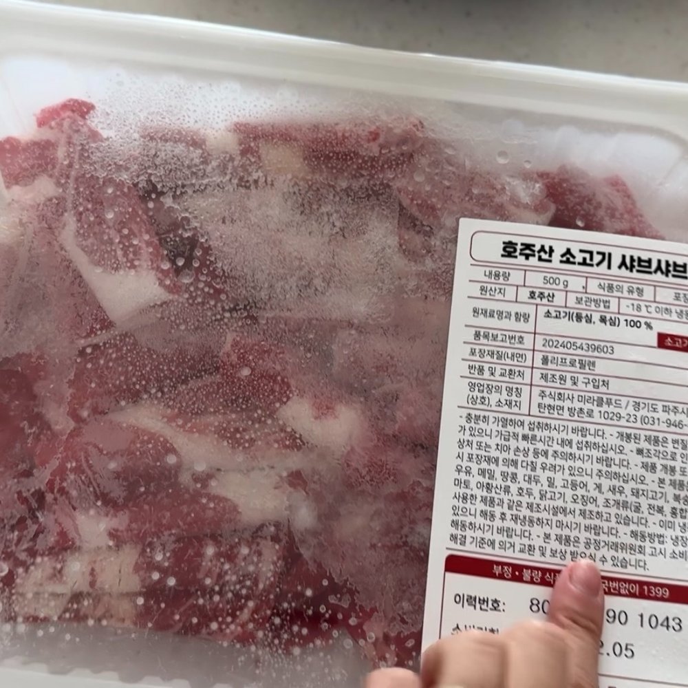 ✔️ 마지막으로 빠질 수 없는 소고기! 샤브샤브용으로 컬리에서 냉동 제품을 판매하고 있길래, 마라탕에 넣으려고 함께 구매했어요. 팩에 완전히 밀봉되어 신선하게 배송된 게 정말 최고였답니다👍