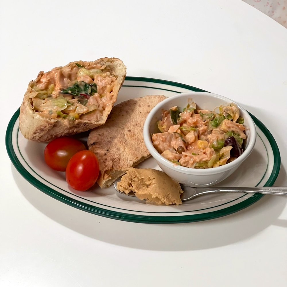 준비한 채소와 계란 요거트 믹스를 피타브레드 속에 듬뿍 채워주세요. 바삭한 빵과 촉촉한 속 재료가 어우러지며, 간편하지만 다이어트와 맛을 모두 잡을 수 있는 완벽한 레시피예요!🍽️💖