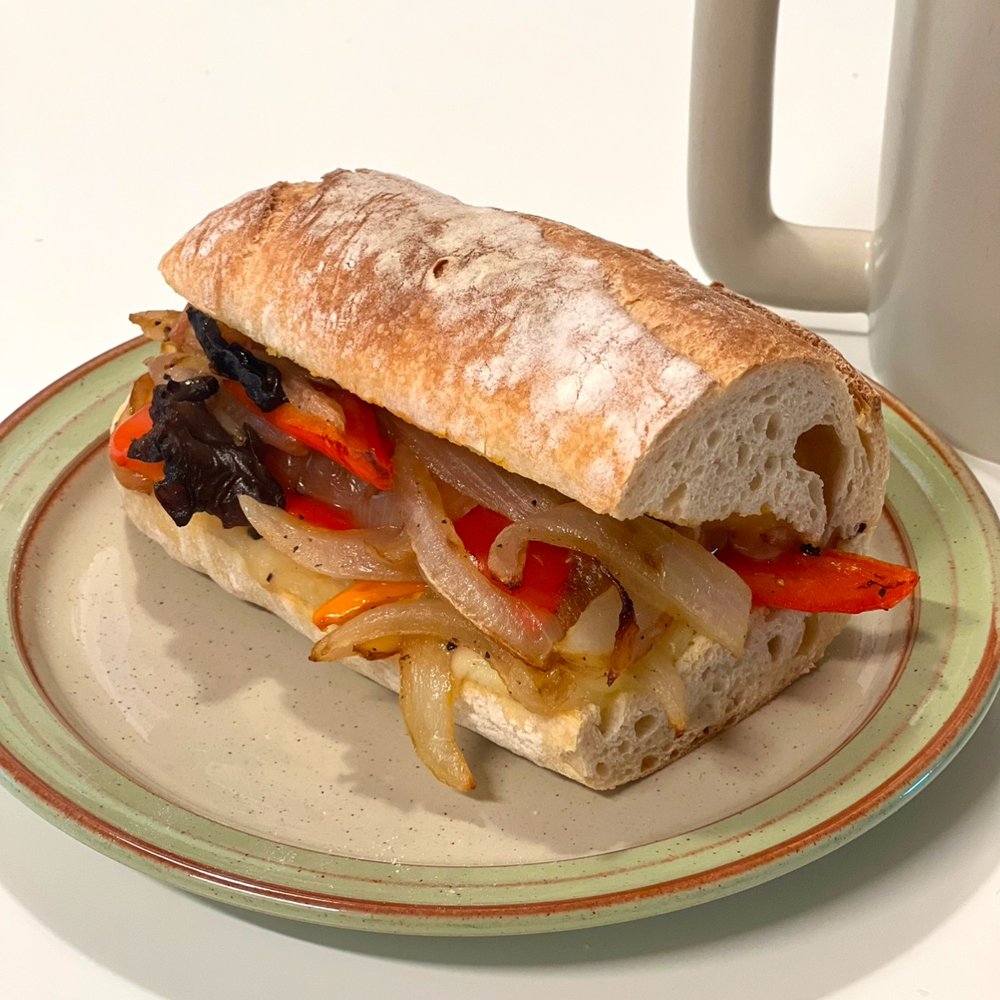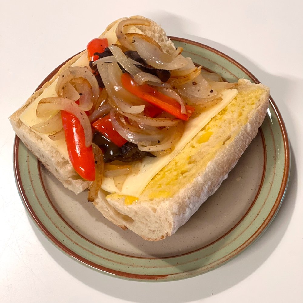 바게트에 채소와 치즈를 더해주니 너무 잘 어울리면서도, 나중에 추가로 닭가슴살이나 계란을 더해주면 더 풍성한 맛을 느낄 수 있겠다 싶었어요! 여러분은 더 다양한 재료를 사용해 보세요! 버섯의 종류도 더 다양하게 쓰면 훨씬 더 깊은 맛을 느끼기 좋겠어요😉