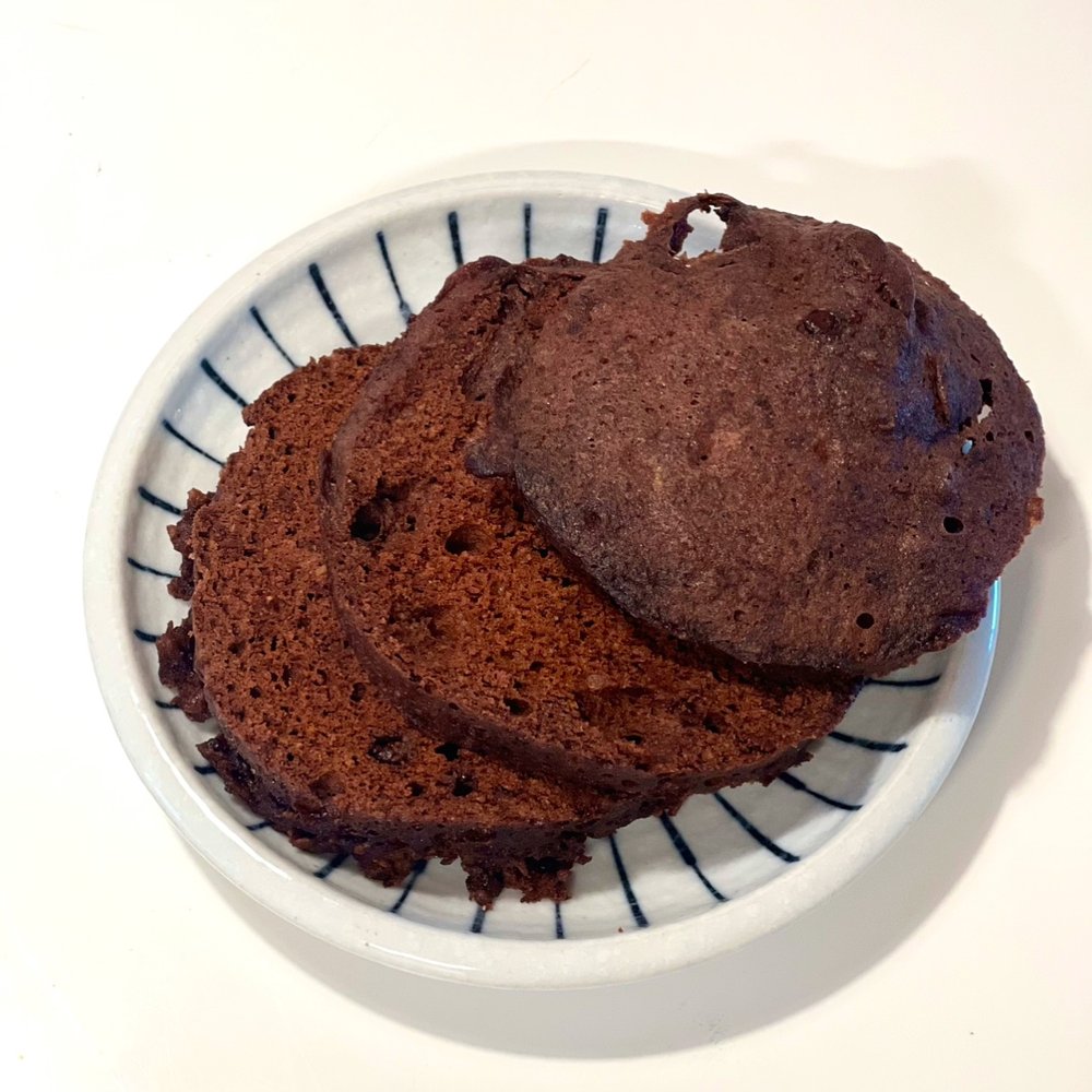동일하게 섞어 초코 시트를 전자레인지에서 완성해 주세요. 카카오파우더 100%는 쓴맛이 조금 나니, 스테비아나 알룰로스의 단맛은 필수! 잘 익은 바나나면 오히려 덜 넣어주어도 돼요.