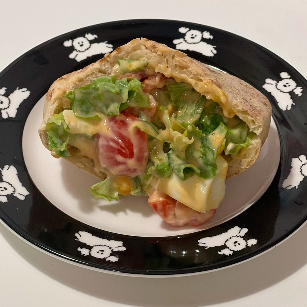 바게트 빵을 활용한 샌드위치는 당에 대한 조절만 잘한다면 정말 균형 갖춘 탄단지 식단이 된답니다. 특히 채소 특유의 단맛은 행복감을 더해줘요💖