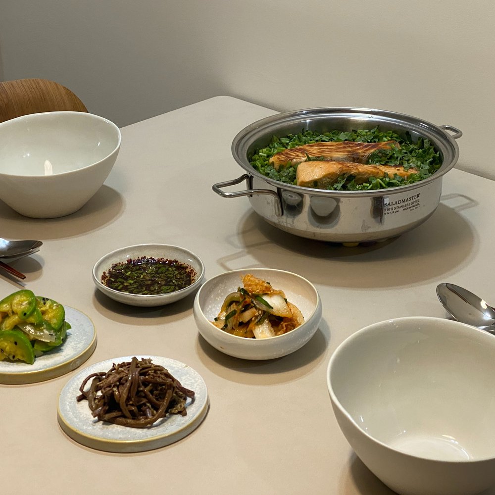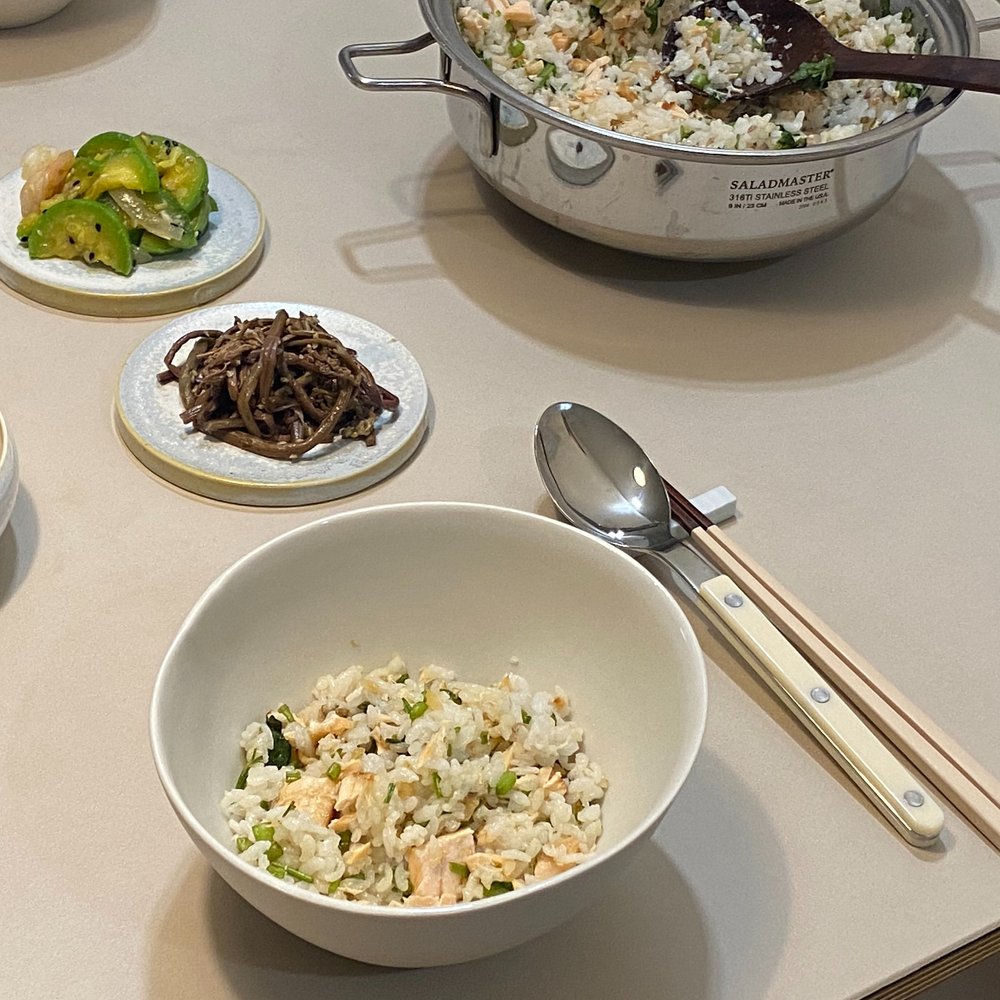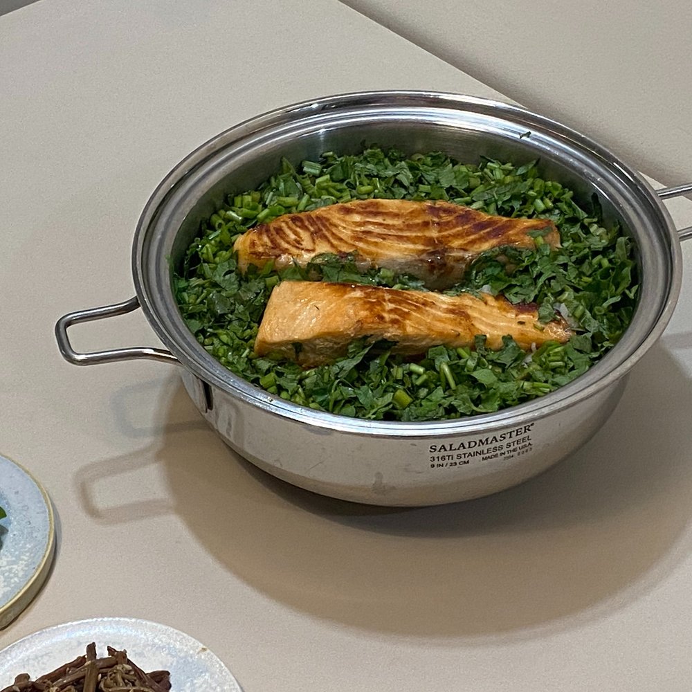 이번 주말 따뜻하게 연어 미나리 솥밥 어떠세요?