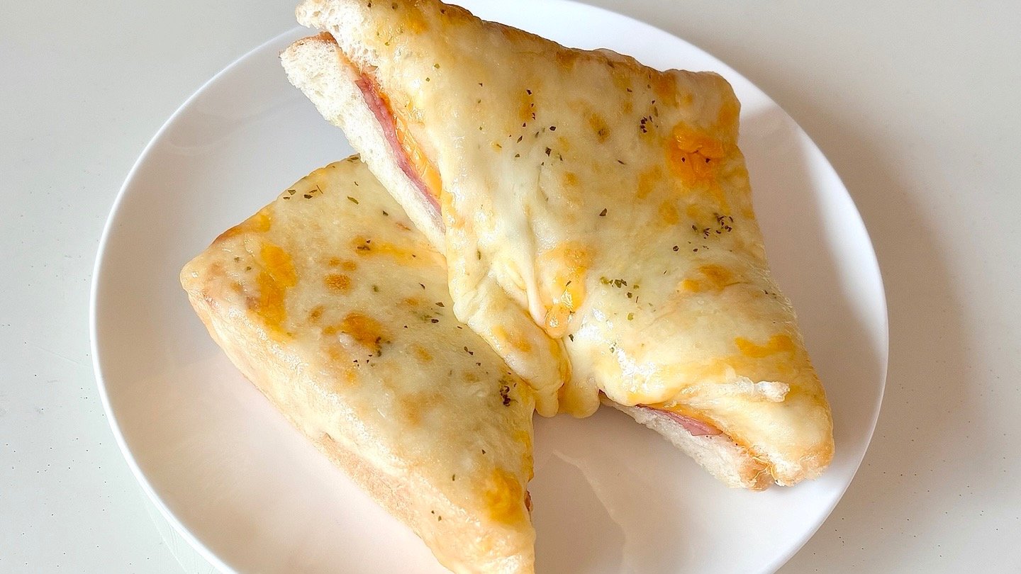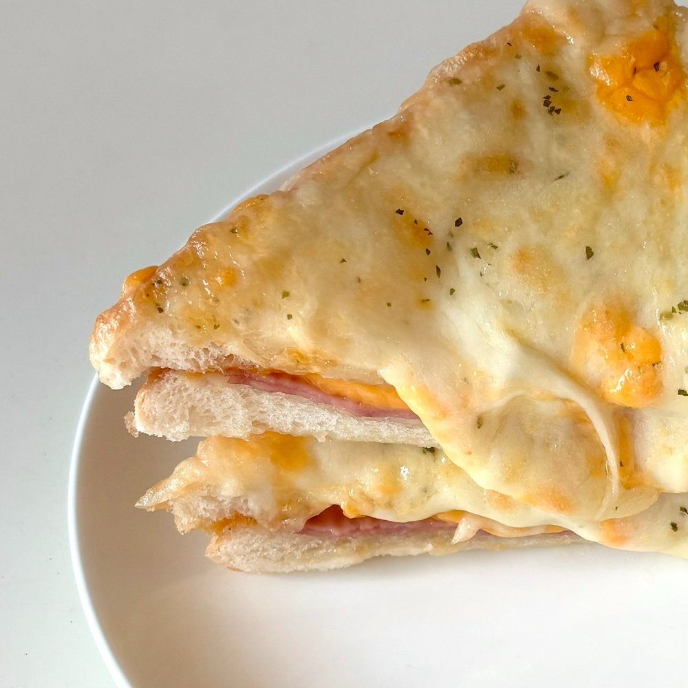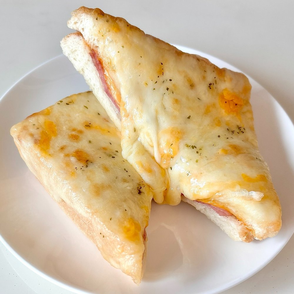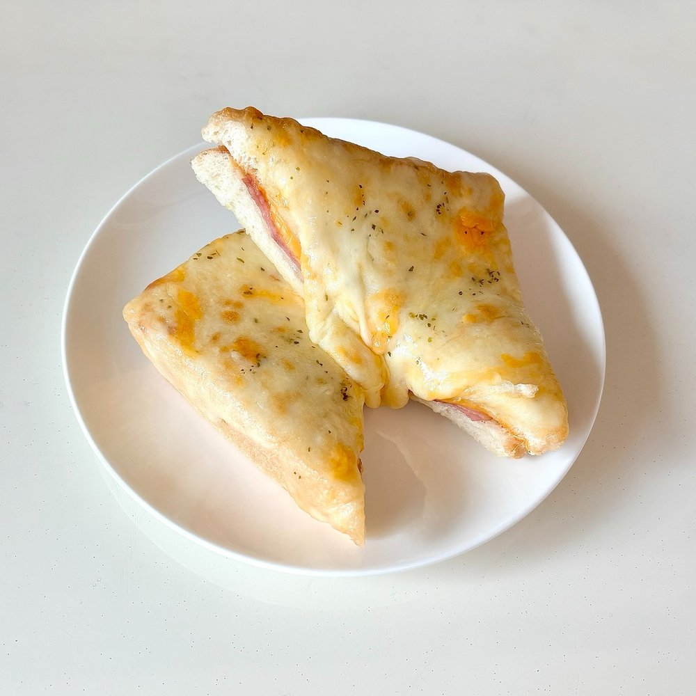 Tip. 햄 위에 올리고 남은 체다치즈를 모짜렐라치즈와 섞어 올리고, 그 위에 파슬리 가루를 뿌려 구우면 더욱 먹음직스러운 크로크무슈를 만들 수 있어요.