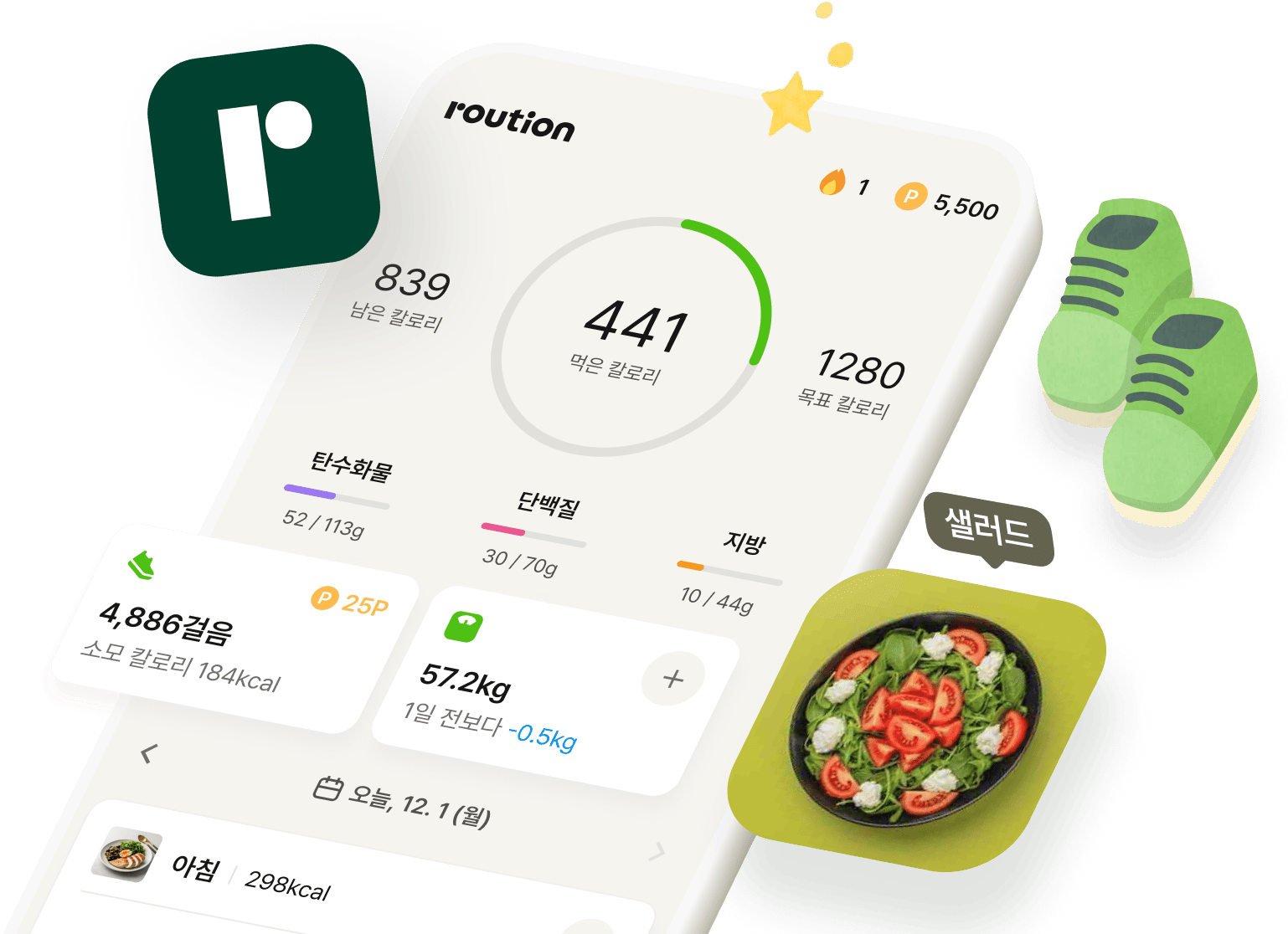 AI 맞춤 식단부터 매일 포인트 보상 혜택까지!모든 다이어트 고민, 루션에서 해결하세요.
